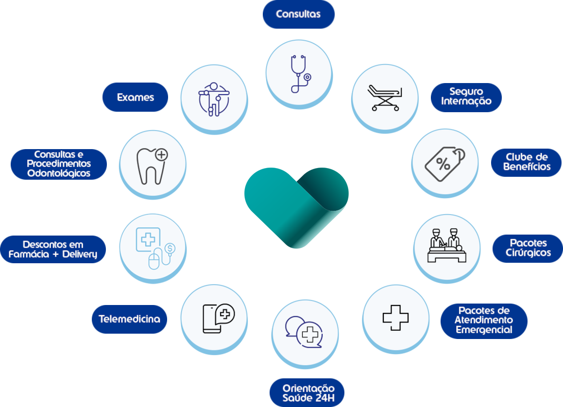 Consultas e exames e acessos a todos os serviços de saúde e telemedicina 24x7, customizado para seus clientes.